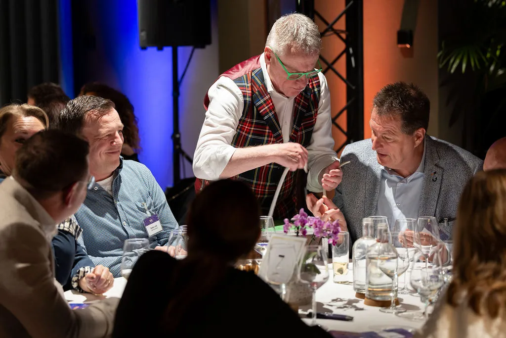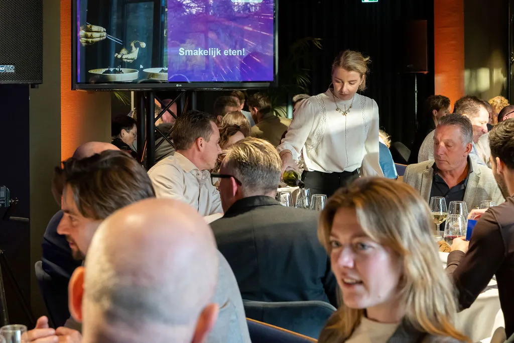 Rond half 5 druppelden de eerste bezoekers binnen voor een ontvangst met een drankje en amuse. Op een informele manier kon er zo al bijgepraat worden met elkaar. Vervolgens schoven de gasten aan bij de dinertafel en startte het programma.