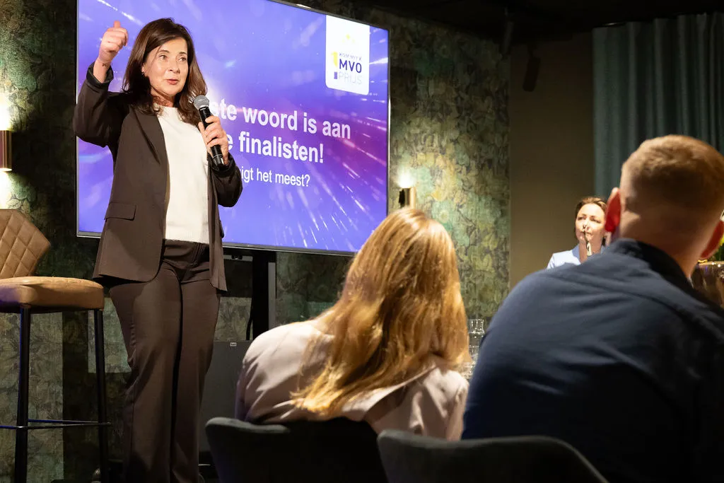 Na een korte introductie door dagvoorzitter Vivian Lataster was het woord voor Kom’mit voorzitter Astrid Pinckaers. Zij stelde de juryleden voor en vertelde meer over de verkiezing van de MVO Prijs.