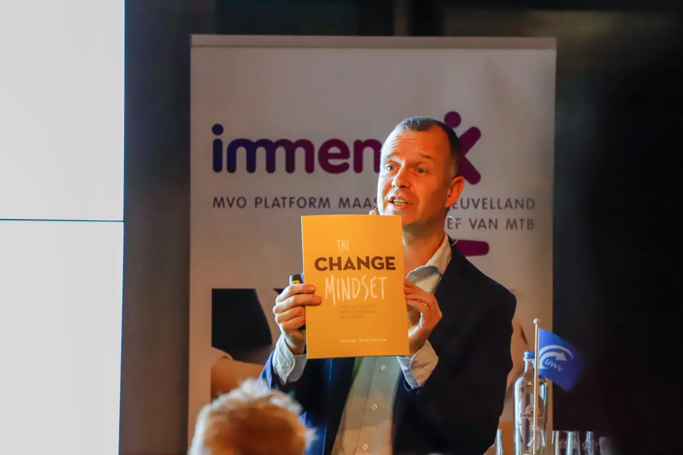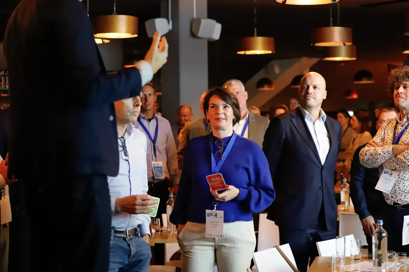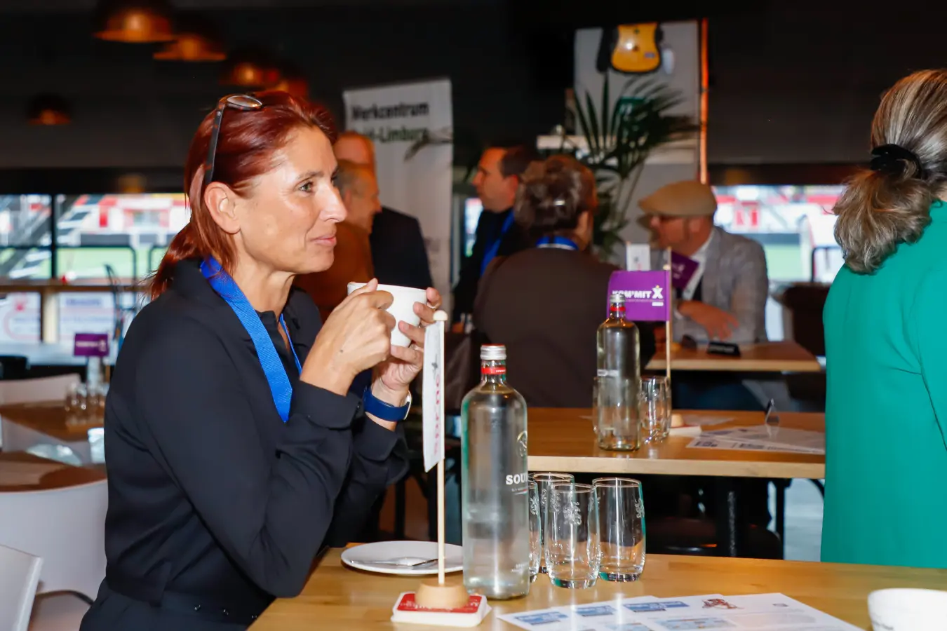 Met zicht op de grasmat werden we ontvangen met een hapje en een drankje. Al snel was het tijd voor inspirerende verhalen en natuurlijk de actuele arbeidsmarktcijfers. Dagvoorzitter Vivian Lataster nam ons mee in de gesprekken met de tafelgasten en prachtige succesverhalen van zowel werknemers en werkgevers, waarbij ons op het hart werd gedrukt om vooral te kijken naar wat (iemand) wel kan. Vervolgens werden we, op weg naar een andere denkwijze die past bij de huidige situatie op de arbeidsmarkt, tijdens een interactieve sessie vol humor geïnspireerd door keynote spreker Cyriel Kortleven “Making Change Simple”.